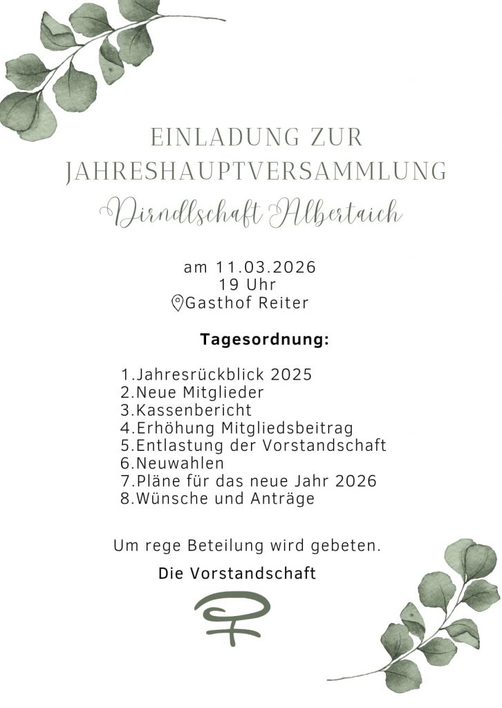 Servus und griaß eich auf da Homepage von da Dirndlschaft Albertaich.Du mechst wissn, wer wir san, wos wir dean oder am bestn mitmacha? Dann bist du do genau richtig, schau doch moi durch!